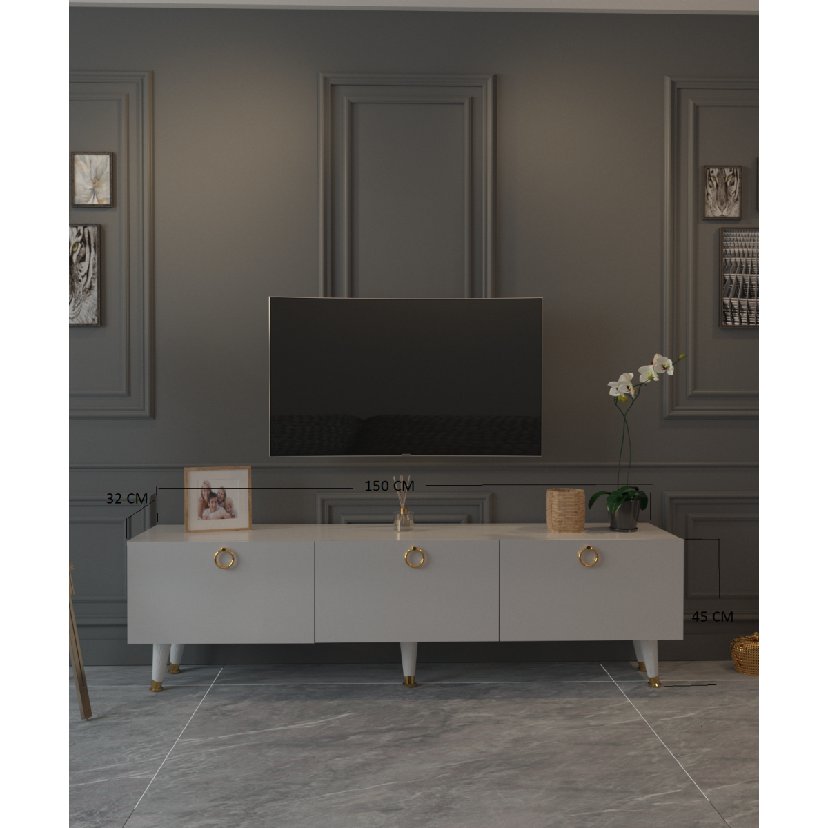 ÜRÜN ÖLÇÜLERİ * Genişlik: 150 CM, Derinlik : 32 CM, Yükseklik : 48 CM, dir.*