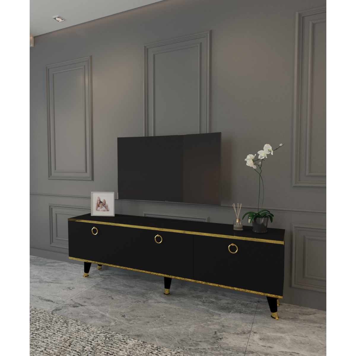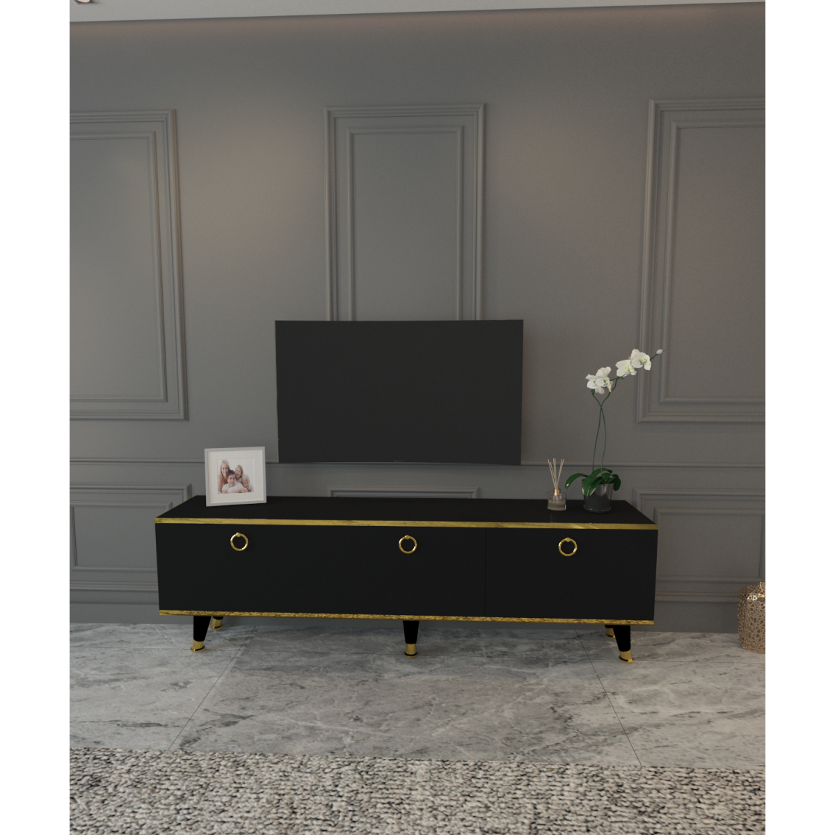 MOBİLYA GEZEGENİ SOHOS TV ÜNİTESİ SİYAH GOLD 150 CM
